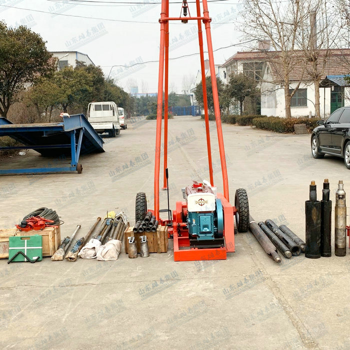 SH30-2A型鉆機(jī)操作簡(jiǎn)單而且機(jī)械化程度高, SH30-2A型鉆機(jī)重量輕、結(jié)構(gòu)緊湊、解體性能好、搬運(yùn)方便,在山區(qū)可拆搬,因配備有一對(duì)膠輪,故在城市和其它道路平坦地區(qū)可用汽車(chē)拖帶來(lái)實(shí)現(xiàn)施工孔位的移動(dòng)。