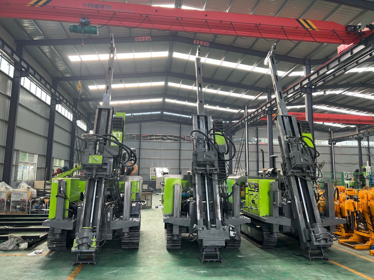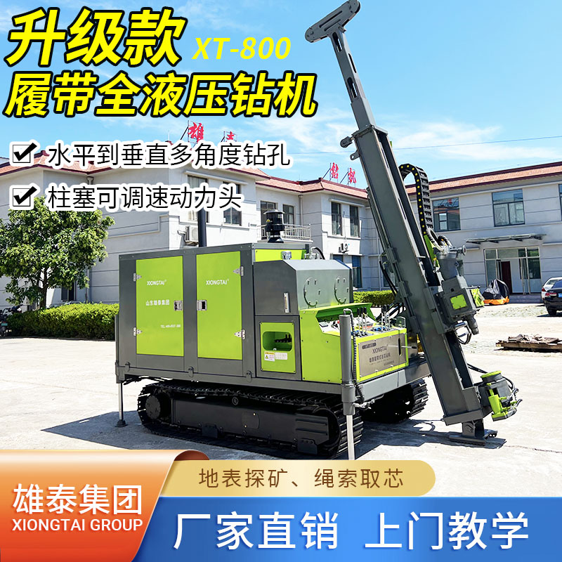 山東雄泰集團(tuán)自主研發(fā)生產(chǎn)的履帶式全液壓鉆機(jī)的無線遙控行走、液壓桅桿自動升起,動力頭自動左側(cè)移機(jī)提鉆為該款鉆機(jī)一大特色。其中桅桿自動升起,動力頭移機(jī)為我公司實(shí)用新型專利,極大緩解了現(xiàn)場施工的難度,有效減小了鉆機(jī)施工人數(shù),節(jié)約了成本,該履帶式全液壓鉆機(jī)分別采用76KW/115KW發(fā)動機(jī),動力強(qiáng)勁,扭矩大,適用于各類復(fù)雜地層的金屬礦開采。